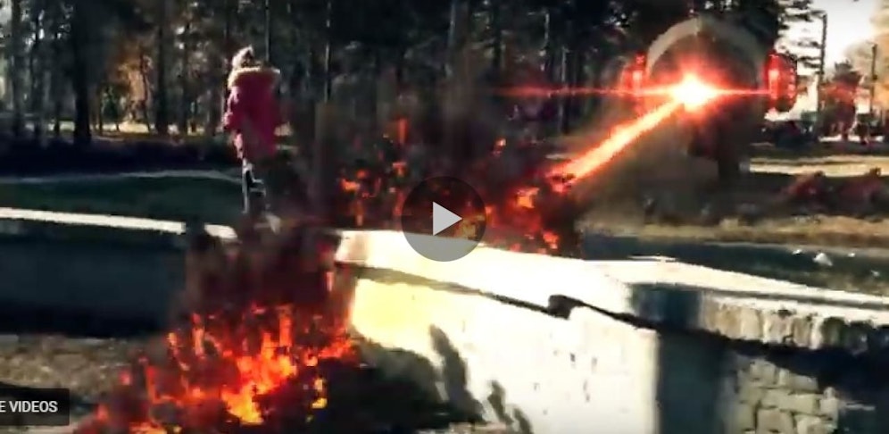 Ein Mädchen läuft über eine kleine Mauer in einem Park und rund um sie wird geschossen und Bomben explodieren. Dabei handelt es sich aber lediglich ein ein Video, dass mit Spezialeffekten modifiziert wurde. Dennoch sieht das Spektakel täuschend echt aus. (red)