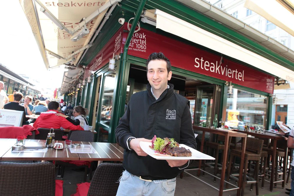 Zartrosa, saftig, herrlich: Am Naschmarkt hat mit dem "Steakviertel" ein wahres Fleischmekka eröffnet. Eine echte Bereicherung zwischen Asia- und Orient-Food! Von Filetsteak über Filet Mignon über Hüftsteak bis T-Bonesteak hat Szene-Gastronom Elijahu Chassidov alle Klassiker auf der Karte.