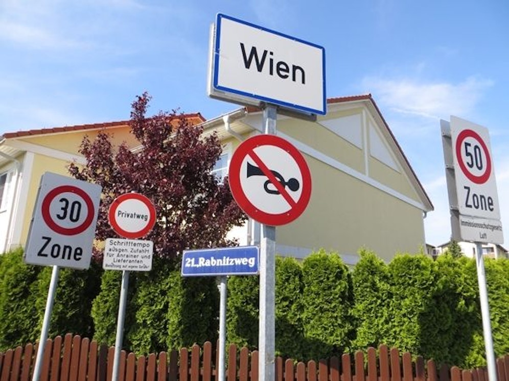 Biegt man in Floridsdorf von der Illgasse in den privaten Rabnitzweg ein, traut man seinen Augen kaum: Sechs Tafeln weisen hier auf Tempo, Name, etc. hin