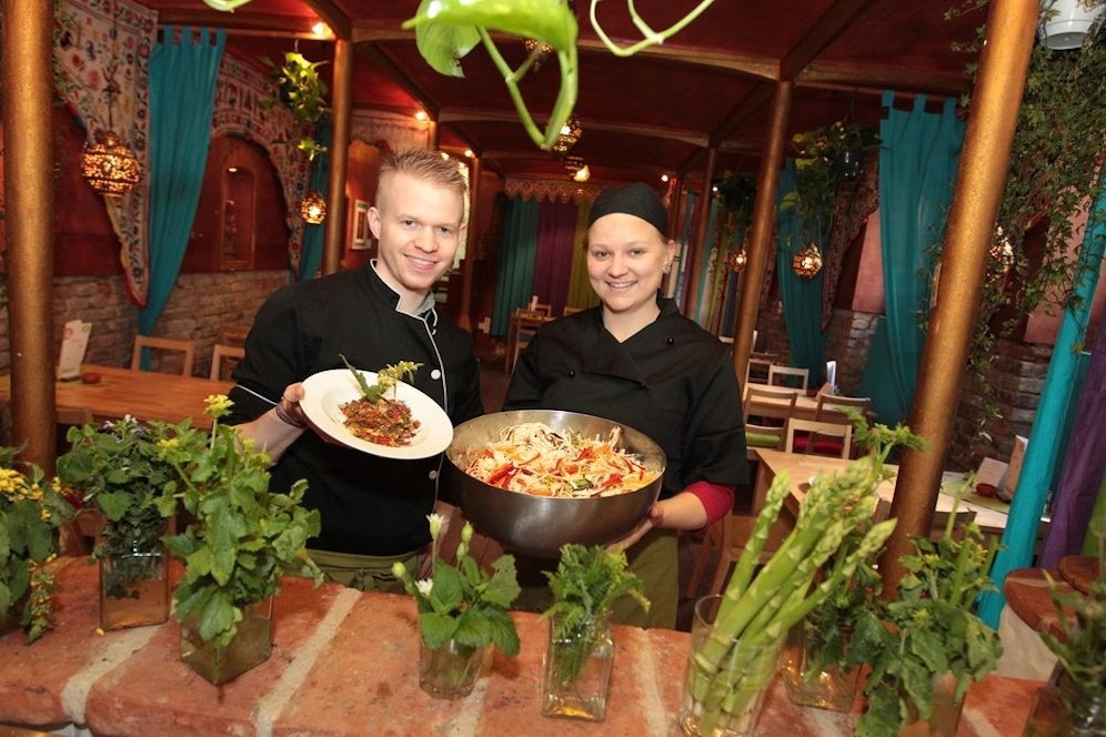 Hier werden die nährstoffreichsten und stärksten Lebensmittel der Welt zu Hanf-Vanilleshakes, Salat mit Maca-Senfdressing oder Energiekugeln mit Rohkakao und Algavennektar verarbeitet. Zum Verdauen gibt’s danach ein Gläschen veganen Wein.