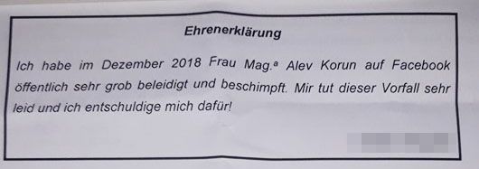 Korun hat daraufhin die Privatklage zurückgezogen, sagt: "Frauen sind kein Freiwild. Dass einer Frau in einer FPÖ-Facebookgruppe mit 10.000 Beteiligten eine Massenvergewaltigung gewünscht wird, ist einfach jenseitig. Daher freut mich unser Erfolg besonders: Herr C. musste sich entschuldigen und das Hass-Posting löschen."