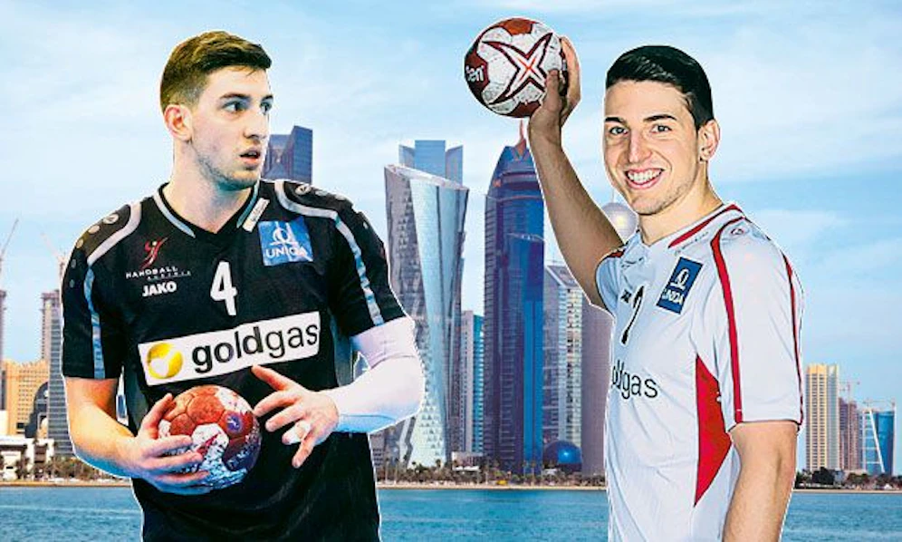 In Doha schlafen die "Twin Towers" im 29. Stock – im Doppelzimmer. Beide kamen vom Fußball zum Handball, spielen im Rückraum und nächstes Jahr wieder in einem Team – beim Bergischen HC. Beide machen das gleiche Studium (Fitnesstrainer) und sind Single.