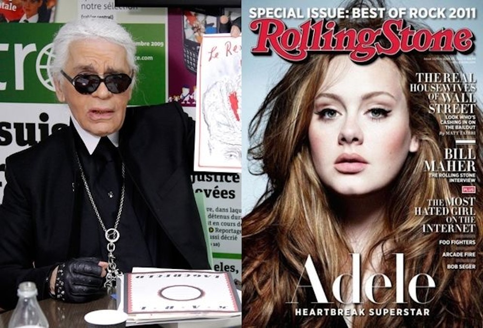 In einem Interview mit der New Yorker Zeitschrift Metro wettert Karl Lagerfeld über ihr Gewicht: "Im Moment ist Adele ja ziemlich angesagt. Sie ist ein bisschen zu fett, aber sie hat ein schönes Gesicht und eine außergewöhnliche Stimme." Das sitzt. Was Adele dazu zu sagen hat, ist bis jetzt noch nicht öffentlich geworden.