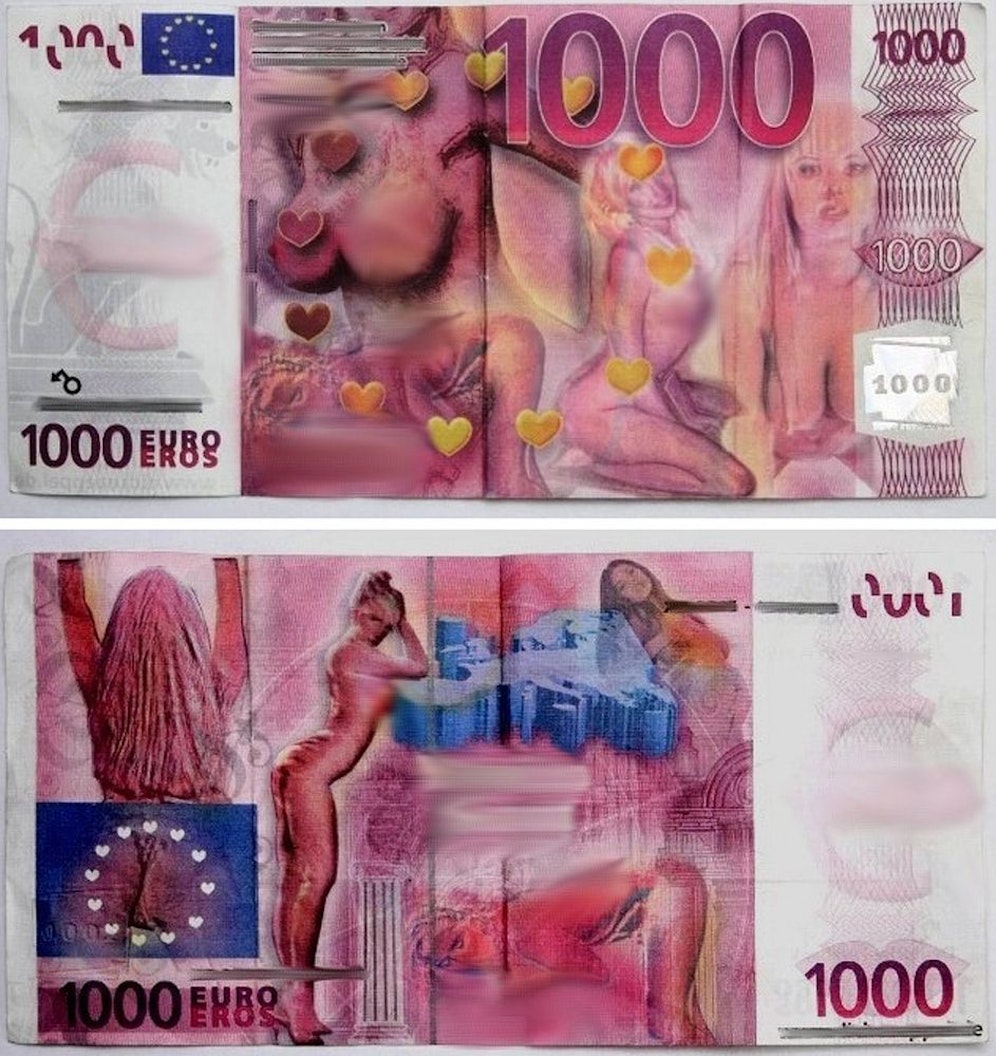 Einen Eintausend-Euro-Schein mit nackten Frauen in erotischen Posen hat ein Tscheche erfolgreich gegen echtes Geld umgetauscht. Der Schein war - von den eigenwilligen Bildmotiven abgesehen - im Stil echter Euro-Scheine fabriziert. Der Scherz endete für den Fälscher allerdings mit der Festnahme durch die Polizei.
