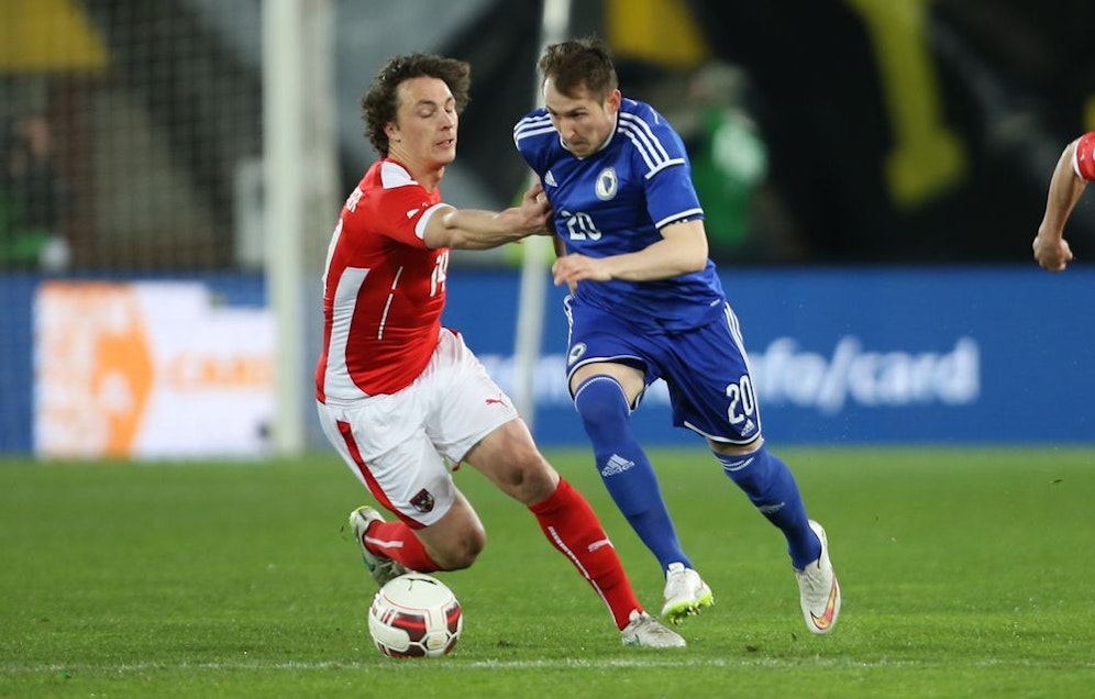 Die nächste Standardsituation von der rechten Seite war da schon um einiges Gefährlicher. In der 27. Minute drehte Junuzovic den Ball in den Strafraum, Kapitän Marc Janko kam allerdings nicht zum Abschluss. Die Konter der Bosnier blieben weiter ungefährlich. Die neu formierte Abwehr stand sicher. Der bosnische Superstar Edin Dzeko war in Halbzeit eins bei Aleks Dragovic gut aufgehoben, kam kaum zur Geltung.