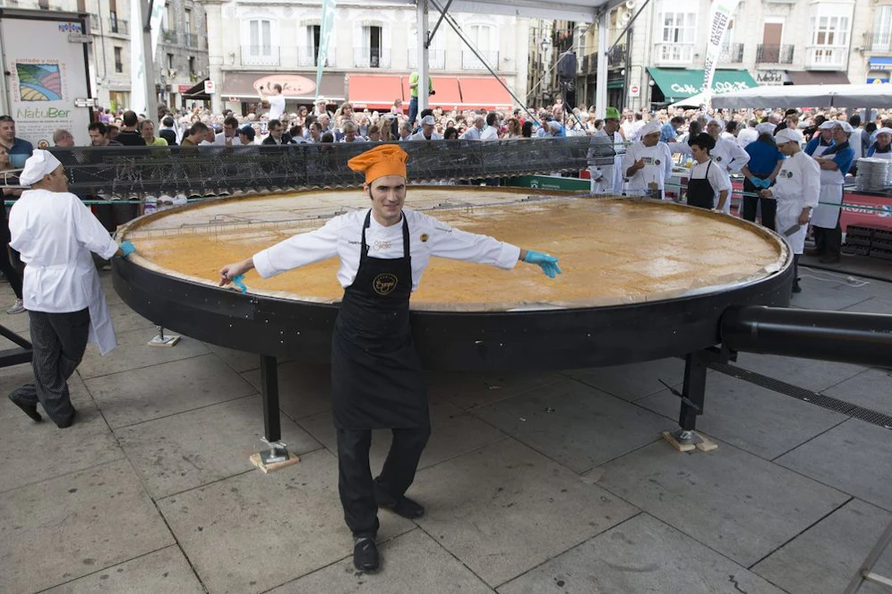 Tausende Zuschauer standen auf dem Plaza de la Virgen Blanca in der nordspanischen Stadt geduldig Schlange, um ein Stück der Riesen-Tortilla abzubekommen. Man werde rund 10.000 Menschen verköstigen können, so die Organisatoren. Bei der rund dreistündigen Zubereitung wurden den Angaben zufolge 15.000 Eier, 1,6 Tonnen Erdäpfel, 30 Zwiebel, zehn Kilogramm Salz und 150 Liter Olivenöl verwendet.