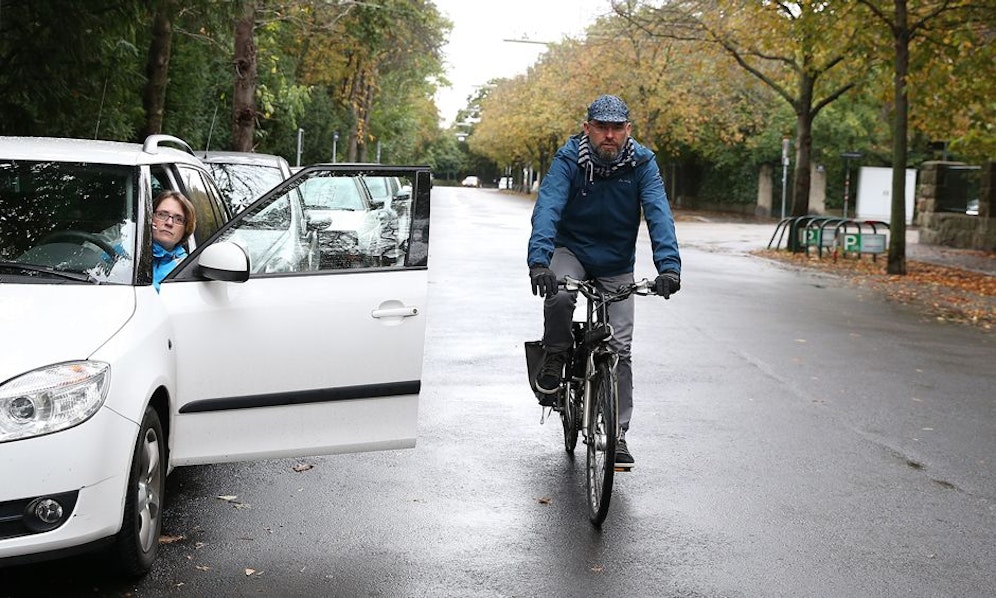 Diese Situation kennt jeder Radler in der Stadt: Man tritt in die Pedale, plötzlich geht eine Autotür auf. Wer es noch schafft, vor einem „Dooring“- Unfall abzubremsen, hat Glück. Die Radlobby empfiehlt schon länger, von geparkten Autos mindestens 1,2 Meter Abstand zu halten.