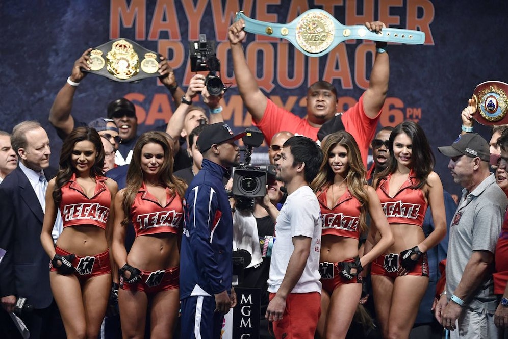 Das traditionelle Abwiegen vor dem lockte rund 12.000 Fans in MGM Grand Garden in Las Vegas. Mayweather und Pacquiao lieferten sich einen letzten Staredown vor dem großen Fight in der Nacht von Samstag auf Sonntag.