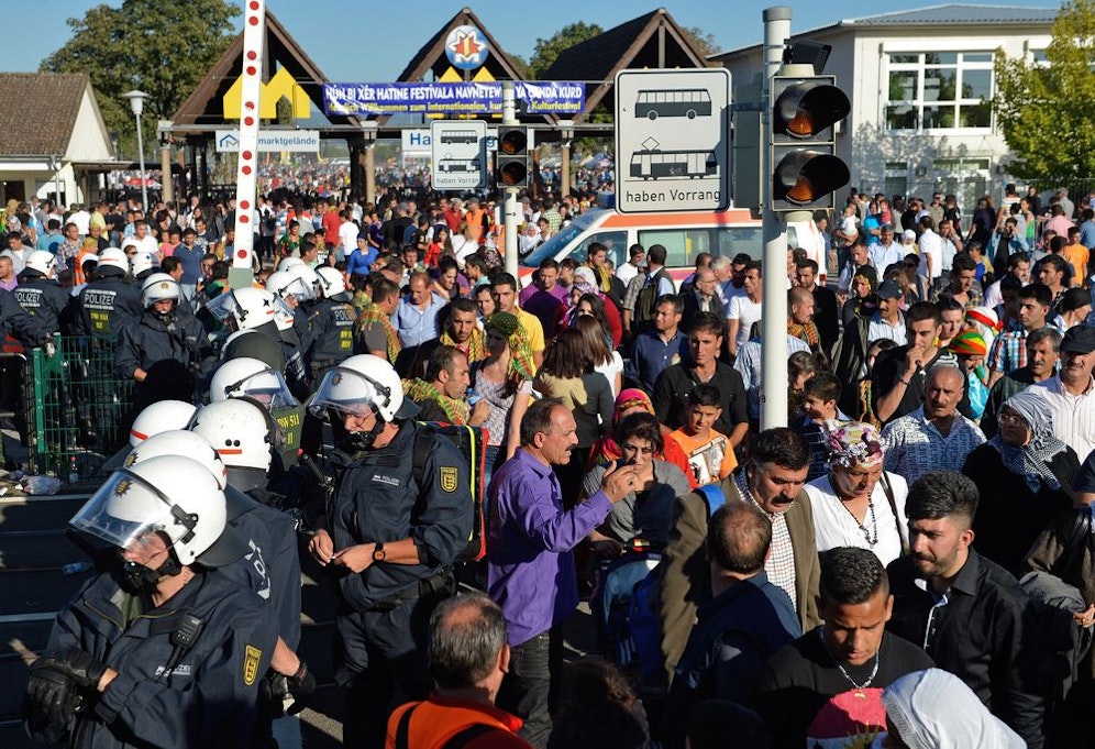 Später wurden mehrere Hundertschaften der Polizei immer wieder mit Gegenständen beworfen. Die gewalttätigen Kurden seien von vielen tausend weiteren Veranstaltungsbesuchern lautstark unterstützt worden. Man habe "keine Chance" gehabt, die Lage zu beruhigen, sagte der Sprecher. Erst nach Ende der Veranstaltung am Abend beruhigte sich die Lage.