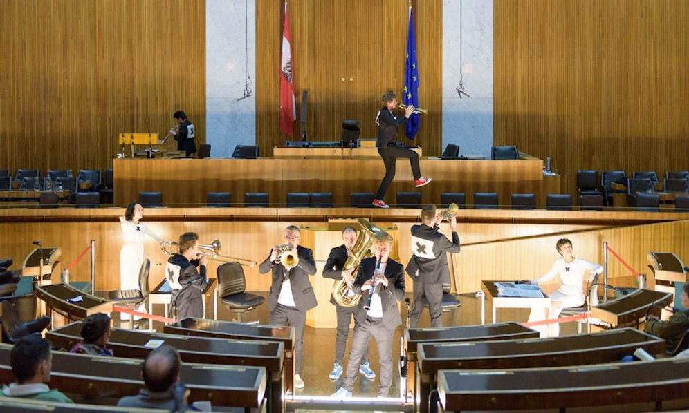 Zwei Tage lang hatte das Parlament Ende Oktober seine Türen für Besucher geöffnet. 15.000 Menschen nutzten das Angebot. Ihnen wurde auch ein Kunstprojekt der Gruppe "wenn es so weit ist" zum Thema Demokratie und Parlamentarismus geboten.