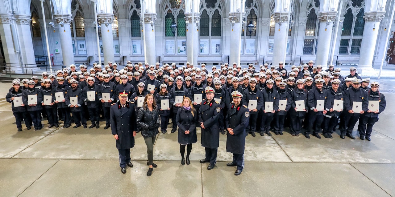 Mit der Einführung des flächendeckenden Parkpickerls Anfang März wuchs die Gebührenzone in Wien um fast das Doppelte. Der Autopendlerverkehr wurde reduziert und mehr Platz im öffentlich Raum frei. Um die Kontrollen in diesen neuen Gebieten stemmen zu können, wurden heuer 186 neue Kontrollorgane von der MA67 aufgenommen. Nach absolvierter Ausbildung überreichte ihnen Mobilitätsstadträtin Ulli Sima (SP) nun feierlich ihre Urkunden.