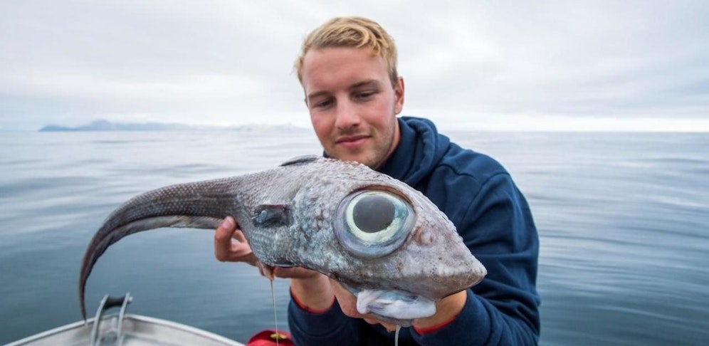 Als er es endlich geschafft hatte, schreckte er ein wenig zurück. Denn an den vier Haken seiner Angelschnur hingen nicht nur zwei Heilbutte, sondern auch ein ihm völlig unbekannter Fisch mit riesigen Augen. "Es sah einfach seltsam aus, ein bisschen dinosaurierhaft", so Lundahl.
