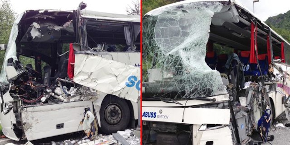 Bei dem einen Bus handelte es sich demnach um einen in Schweden registrierten Tourbus, in dem sich 22 asiatische Touristen befanden. Der andere war ein im Regionalverkehr fahrender Linienbus. Wie es zu dem Unglück kam, ist vorerst noch unklar.