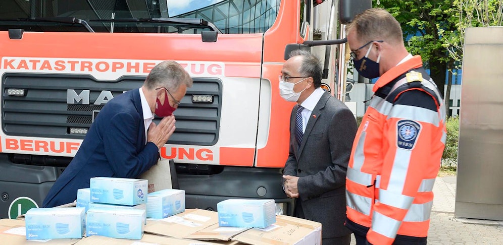 Als Zeichen der Solidarität und der freundschaftlichen Beziehungen zwischen der chinesischen Stadt Nanjing und Wien trafen gestern 20.000 Mund-Nasen-Schutz-Masken sowie 500 Schutzoveralls bei der Berufsrettung Wien ein. Weitere 30.000 Schutzmasken aus Nanjing sind bereits auf dem Weg nach Wien.
