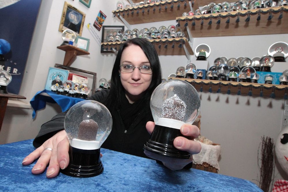 "Wir haben eine Auflage von 200 Stück. Die Hälfte bekommt die Firma Niemetz, die anderen verkaufen wir um je 14 Euro", erklärt die Junior-Chefin der Original Wiener Schneekugelmanufaktur in Hernals.
