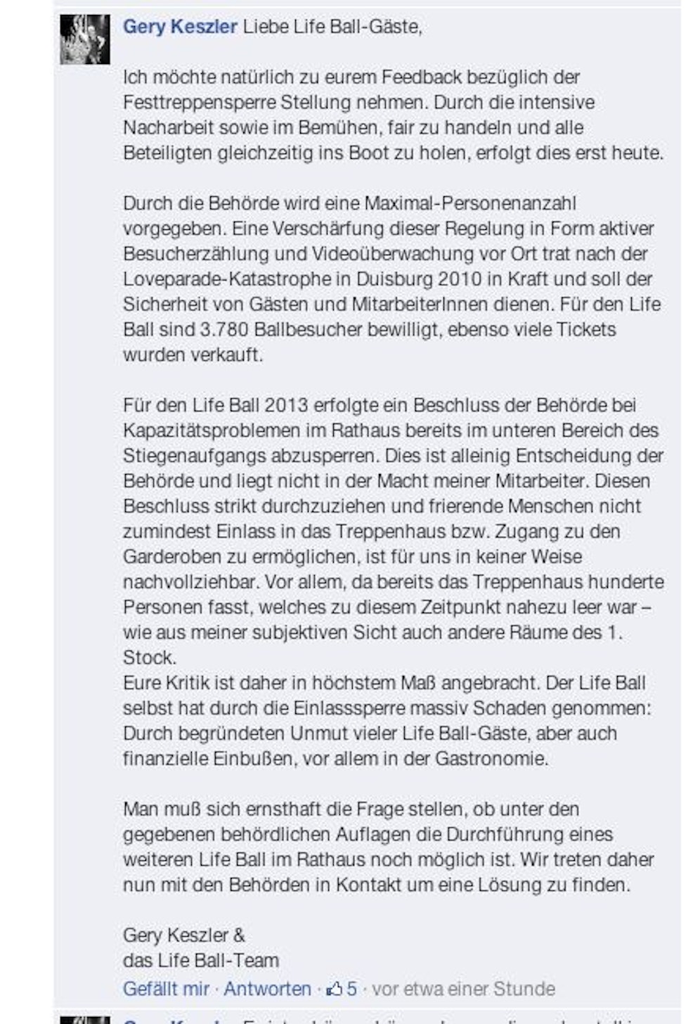 Hier das ganze Statement von Gery Keszler: