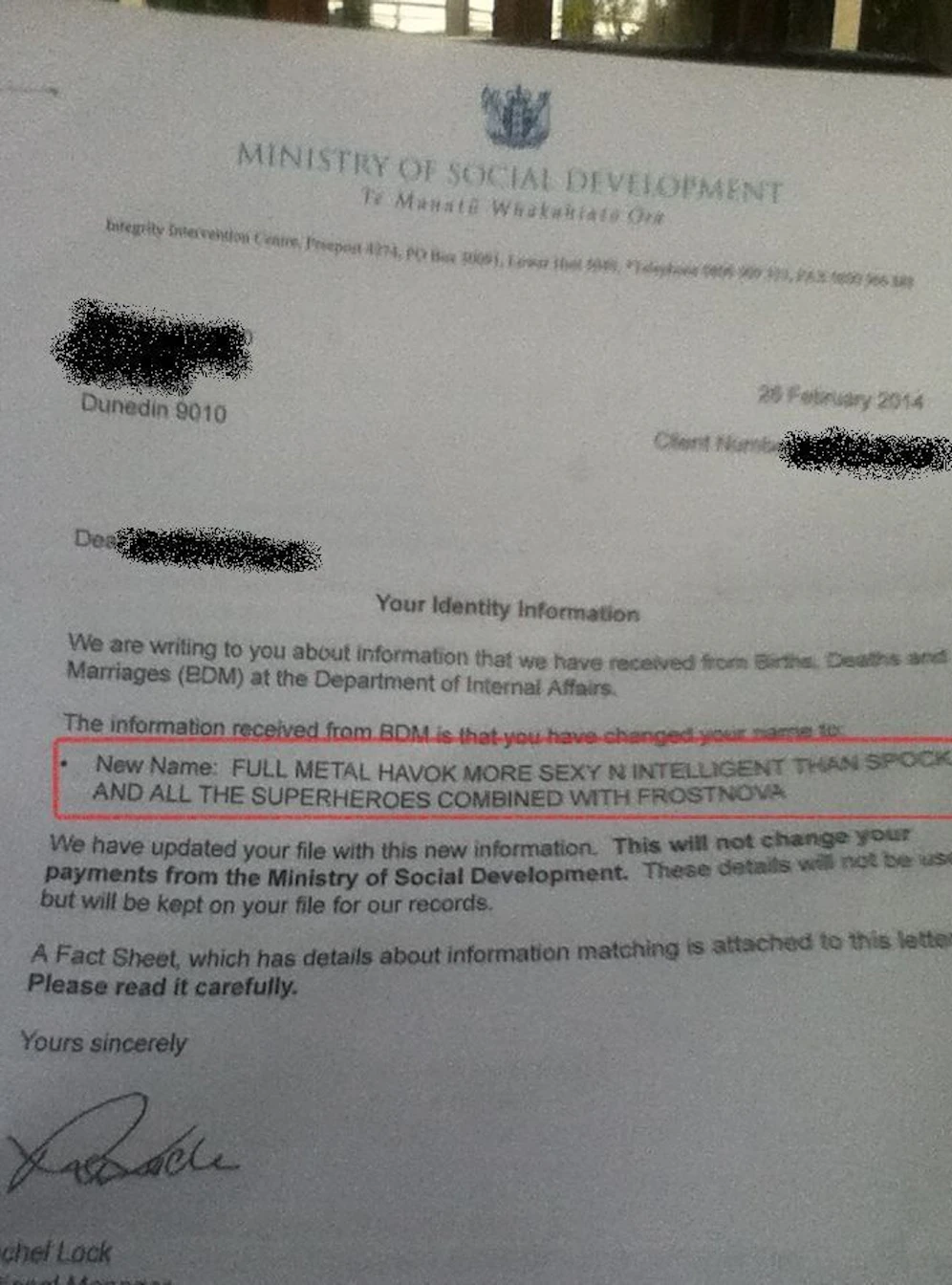 "Full Metal Havok More Sexy N Intelligent Than Spock And All The Superheroes Combined With Frostnova" heißt der 22-Jährige aus der südlichen Stadt Dunebin nun. Bereits vor Jahren hatte er betrunken bei einem Kartenspiel seinen Namen verwettet.