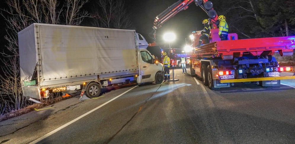 Tödlicher Verkehrsunfall auf der LB54 in Aspangberg (Neunkirchen) am Dienstagabend: Ein Ungar öffnete die Bordwand, hantierte hinten auf der Ladefläche, dabei fing der Klein-Lkw an zu rollen.