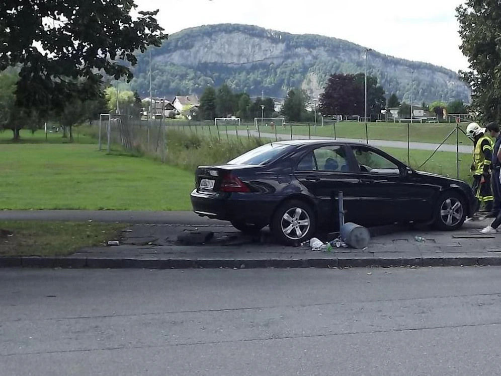 Gegen 12.45 fuhr der Bursch gegen die Bank vor dem Möslestadion in Götzis. Darauf saßen seine 18-jährige Freundin und ihr Cousin. Der Bursch konnte noch rechtzeitig zur Seite springen, das Mädchen wurde jedoch unter der Bank eingeklemmt.