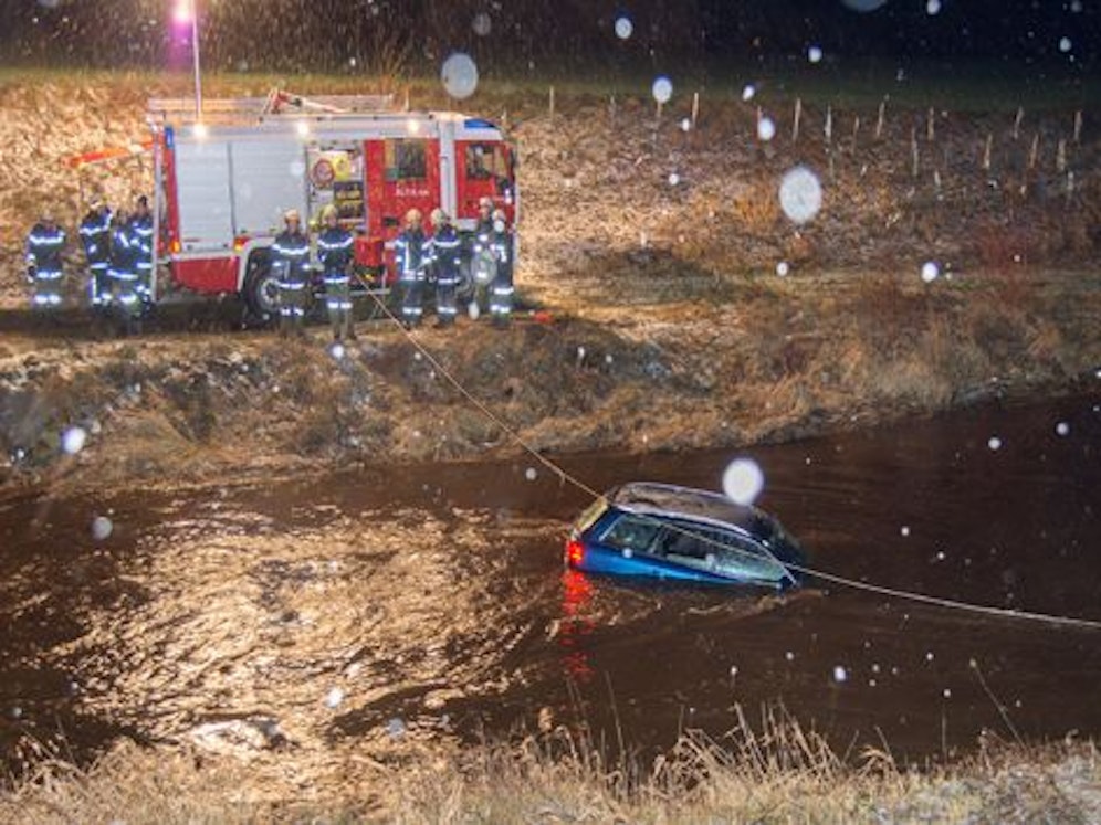 Ein 27-Jähriger ist Sonntagabend in Mitterkirchen in die gestürzt. Der Mann wurde in seinem Auto rund 150 Meter weit mitgerissen und konnte sich in letzter Sekunde durch das eisige Wasser ans Ufer retten.