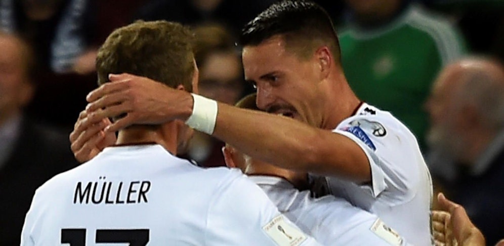 Deutschland löst das Ticket für die WM-Endrunde 2018! Im Quali-Auswärtsspiel gegen Nordirland setzte sich der Titelverteidiger dank der Tore von Rudy (2.), Wagner (21.) und Kimmich (86.) souverän mit 3:1 (2:0) durch und ist von Platz eins in Gruppe C nicht mehr zu verdrängen. "Damit kann man zufrieden sein", freute sich Teamchef Joachim Löw nach der Partie. Auch die Nordiren, die dank Magennis in der Nachspielzeit zum Ehrentor kamen, haben noch gute Aussichten auf die Reise nach Russland. Trotz der Niederlage sind sie fix auf Platz zwei und können für die Play-offs planen.