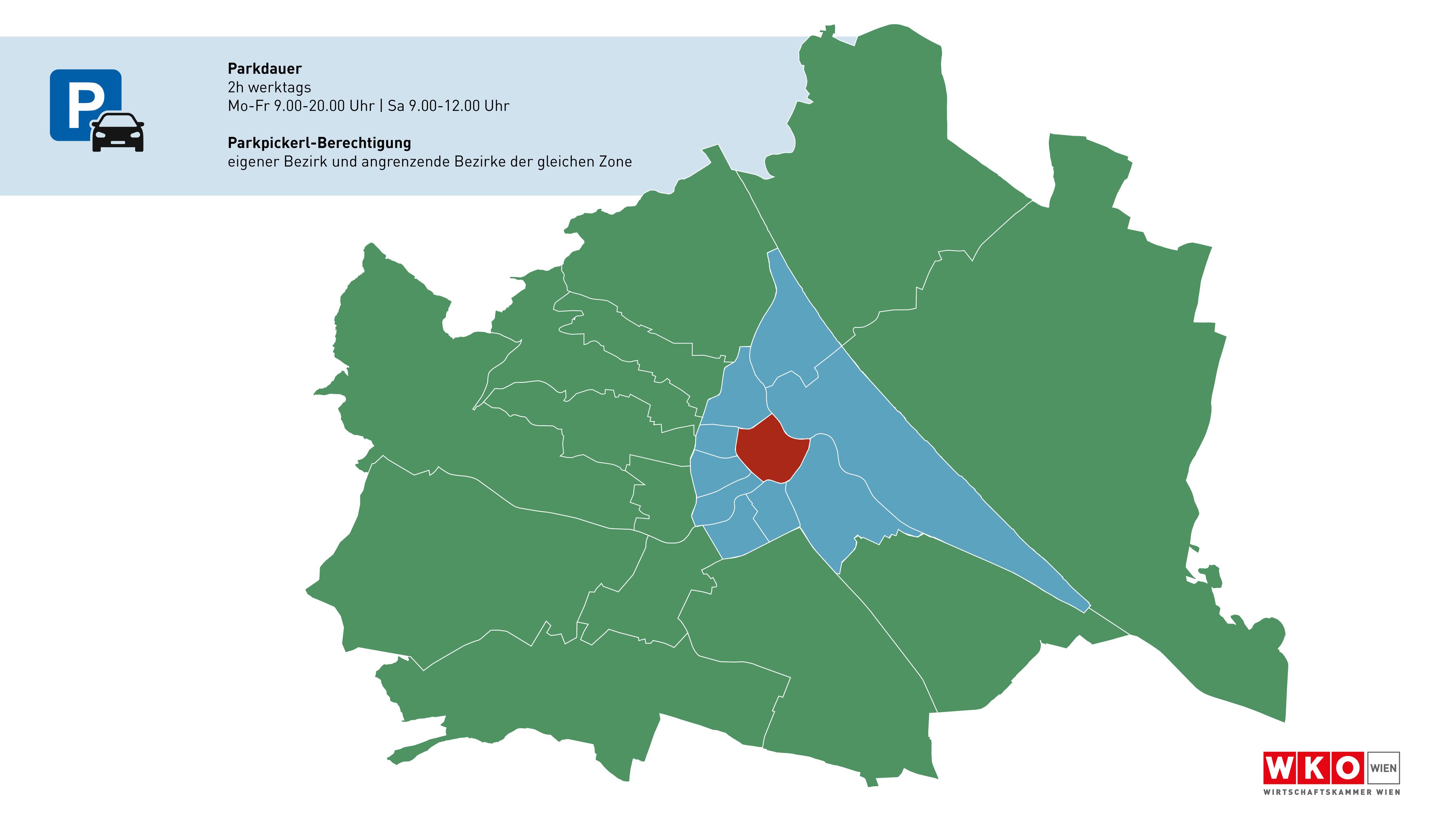 Das 3-Zonen-Modell gilt auch für das Parkpickerl. Je nach Wohnort können die Wiener um ein Pickerl für ihre Zone beantragen. Bewohner der "blauen Zone" könnten damit – auch dauerhaft – in allen Bezirken derselben Zone parken, die an den eigenen Bezirk angrenzen. Damit definiert die Wirtschaftskammer die bereist existierenden Überlappungszonen neu und erweitert sie.