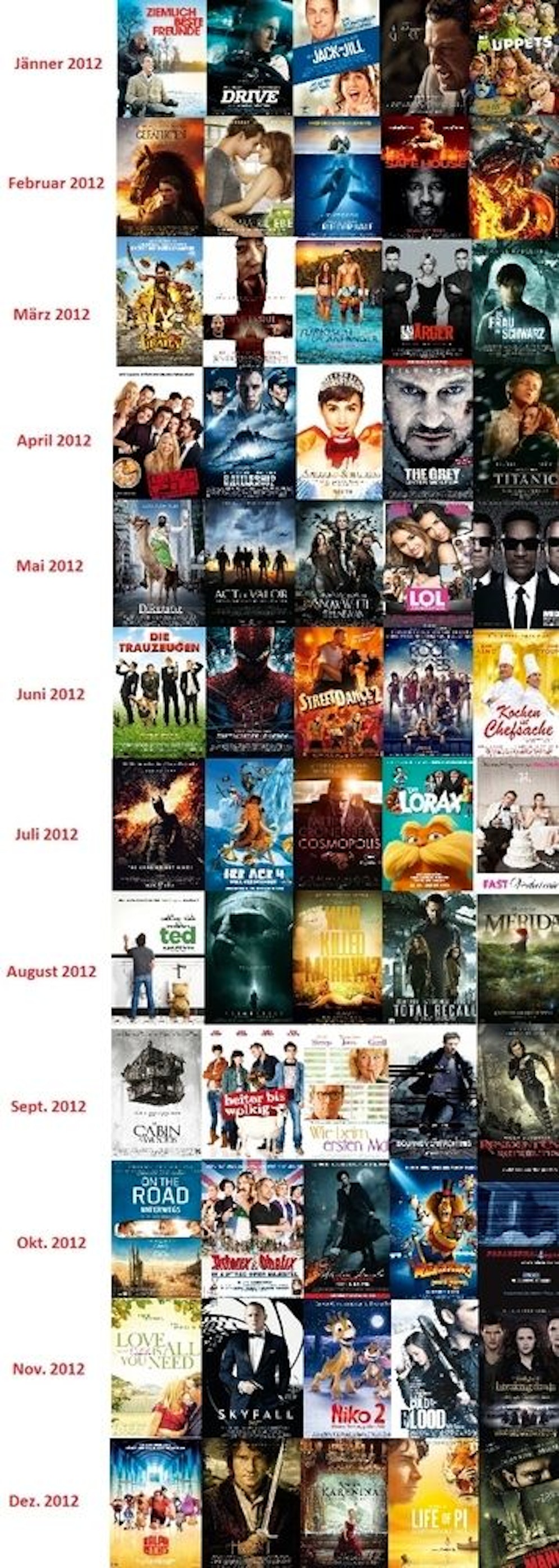 Das neue Jahr naht und tausende spannende Filme hat es im Jahr 2012 gegeben. Lehnt euch zurück und denkt über die vergangen Stunden nach, die ihr in diesem Jahr vor der Kinoleinwand verbracht habt. Welcher Film hat sich für immer im Gedächtnis festgesetzt? Welcher Streifen konnte euch zutiefst berühren?