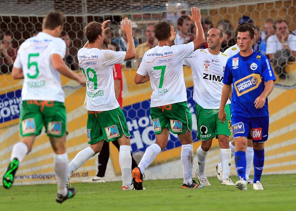 Nach einem 3:0 bei Aufsteiger SV Horn halten die Lustenauer bei einem Torverhältnis von 11:0. Als erster Verfolger brachte sich indes der SKN St. Pölten mit einem überraschend klaren 4:1 in Altach in Position. Die ebenfalls noch ungeschlagenen Niederösterreicher weisen zehn Zähler auf.