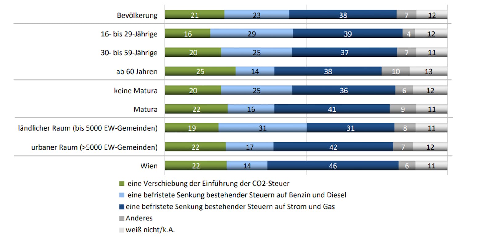 Die Details: Fast vier von zehn Befragten halten eine befristete Steuersenkung auf Strom und Gas für die sinnvollste Maßnahme im Kampf gegen die massiv gestiegenen Energiekosten. 23 Prozent würden dagegen eine Steuersenkung auf Treibstoff bevorzugen. Besonders FPÖ-Wähler und Menschen am Land sprechen sich dafür aus. Die CO2-Steuer könnte noch für koalitionsinterne Probleme sorgen: Für allem ÖVP-Fans (33 Prozent) sind für die Verschiebung dieses grünen Prestigeprojekts.