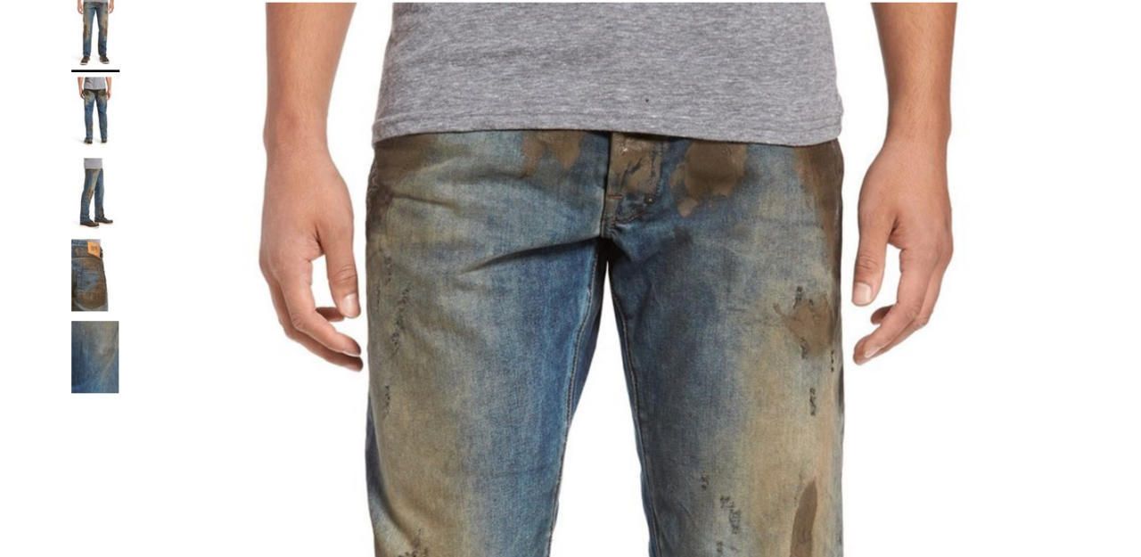 Die Hose mit dem Namen Barracuda Straight Leg Jeans mit künstlichem Schmuddeleffekt lasse seinen Träger als jemanden erscheinen, der "sich nicht scheut", sich dreckig zu machen, preist Nordstrom sein Produkt.