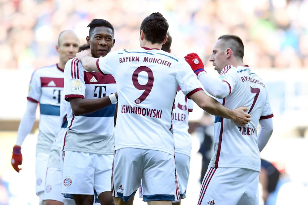 In Paderborn ließen die Bayern den Gastgebern keine Chance. Robert Lewandowski sorgte mit seinen Toren in der 24. und 37. Minute für die frühe Vorentscheidung zugunsten des Spitzenreiters, bei dem David Alaba durchspielte. Nach dem Seitenwechsel bescherten Arjen Robben (63./Elfmeter, 86.), Franck Ribery (72.) und Mitchell Weiser (78.) dem Rekordchampion den nächsten Kantersieg.
