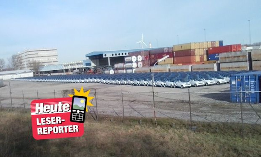 Was aussieht wie eine Photomontage, ist ein tatsächlicher Schnappschuss vom Hafen Freudenau in Wien-Simmering. Auf 600 schätzt unser Leserreporter die Anzahl der Kleinwagen, die er in Bildern festhielt. So perfekt aufgereiht sind sie ein beeindruckender Anblick.