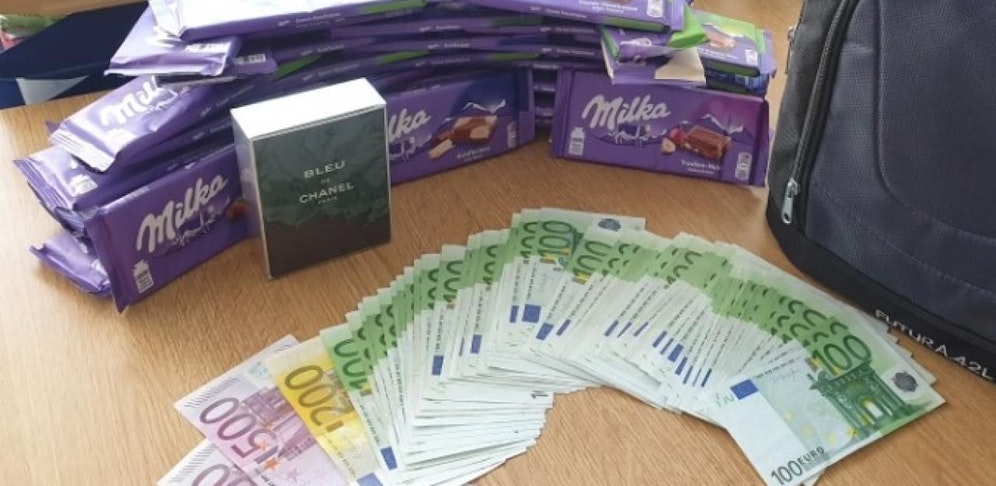 Im Abteil konnte das Reiseutensil keinem Passagier zugeordnet werden, deshalb öffnete der Zugbegleiter auf der Suche nach einem Identitätshinweis das Fundstück und fand darin die hohe Summe an Bargeld und Schokolade.