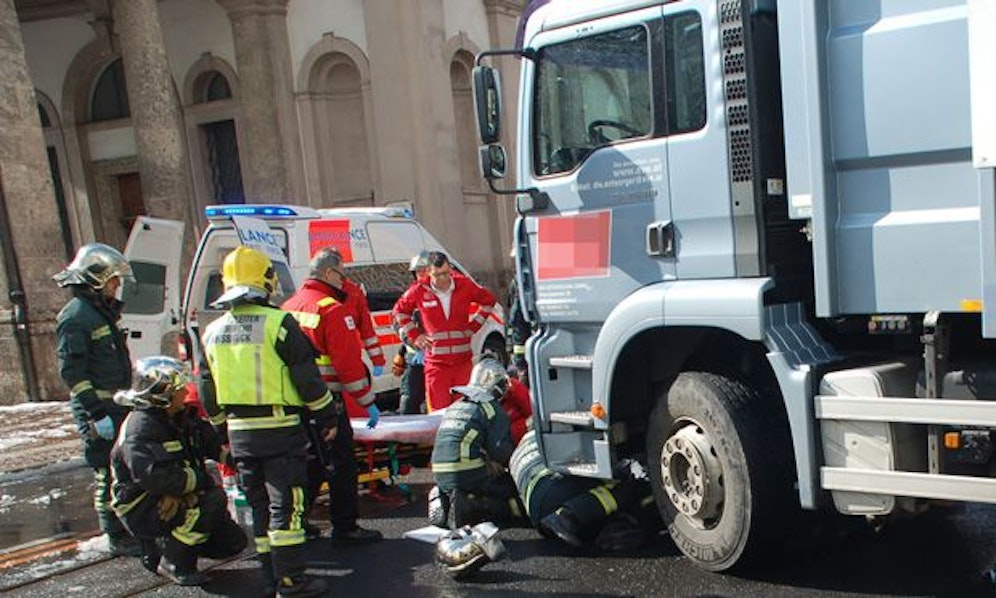 Zu einem folgenschweren Unfall ist es am Dienstag in Innsbruck gekommen. Ein 49-jähriger Lkw-Fahrer fuhr eine 73-jährige Oma am Gehsteig nieder, wobei diese schwer verletzt unter der Vorderachse eingeklemmt war.