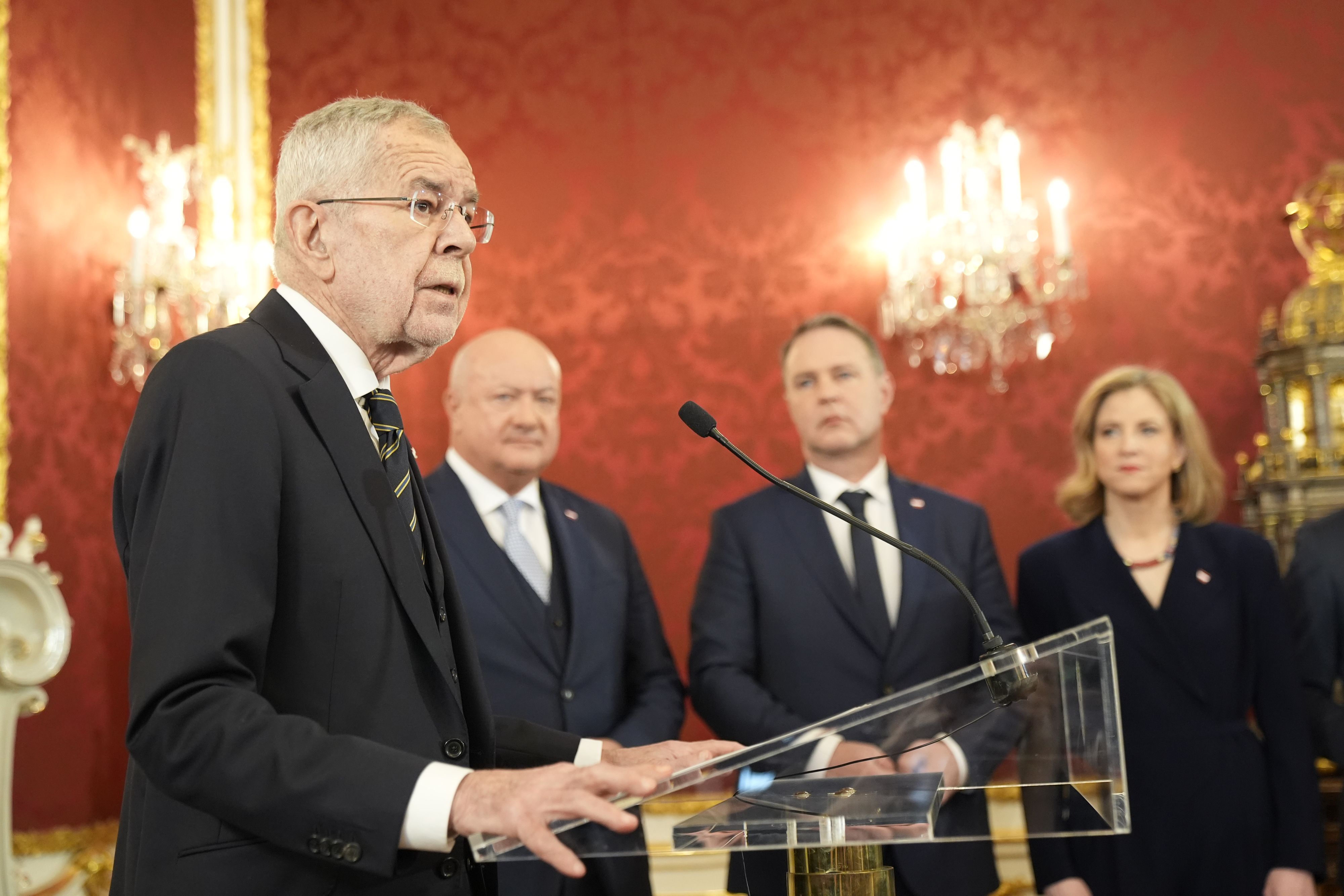 Bevor die neue Regierung vereidigt wurde, hielt das Staatsoberhaupt eine kurze Rede. "Was lange währt, wird endlich gut. Danke, dass Sie das Staatsganze in den Vordergrund gestellt haben", sagte er in Richtung der Parteispitzen. Der Präsident sei froh, dass die Verhandler in den Gesprächen über ihren Schatten gesprungen seien und eine Einigung erzielt haben – "auch wenn es sicherlich nicht immer einfach war. Es wäre wahrscheinlich oft leichter und verlockender gewesen, stur zu bleiben. Aber 'stur' macht eben keine Regierung", so Van der Bellen.