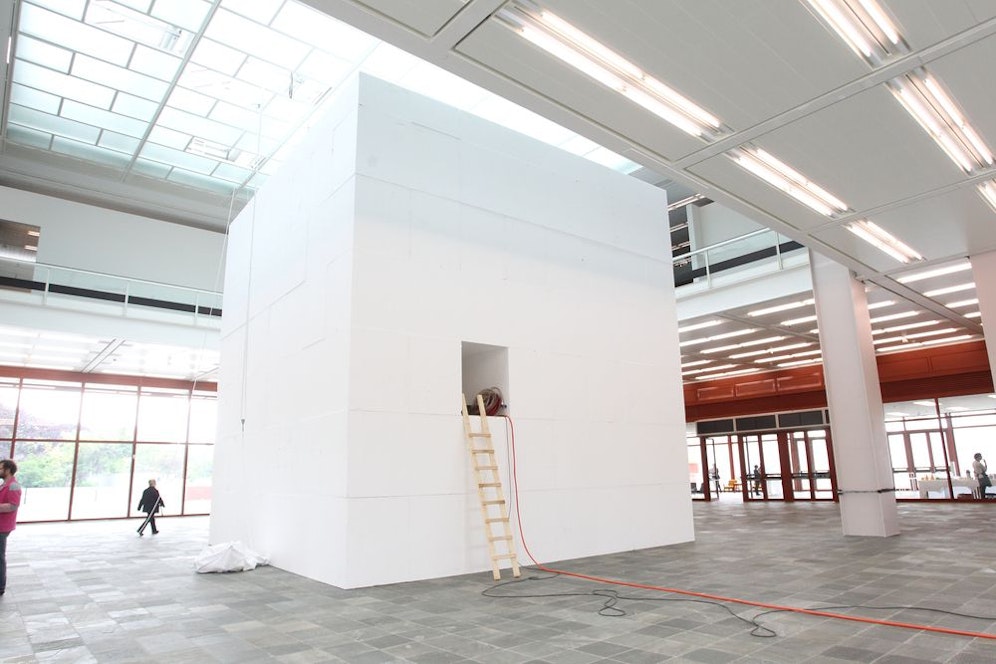 Im 21er Haus nahe dem Belvedere werden bis Sonntag fleißig Löcher gebuddelt - und zwar in einen acht Meter hohen, breiten und tiefen Styroporwürfel. Die Löcher werden dann mit Gips ausgegossen, die Skulpturen aufgestellt - und voilà, fertig ist die Ausstellung des Künstlerquartetts "Gelatin".