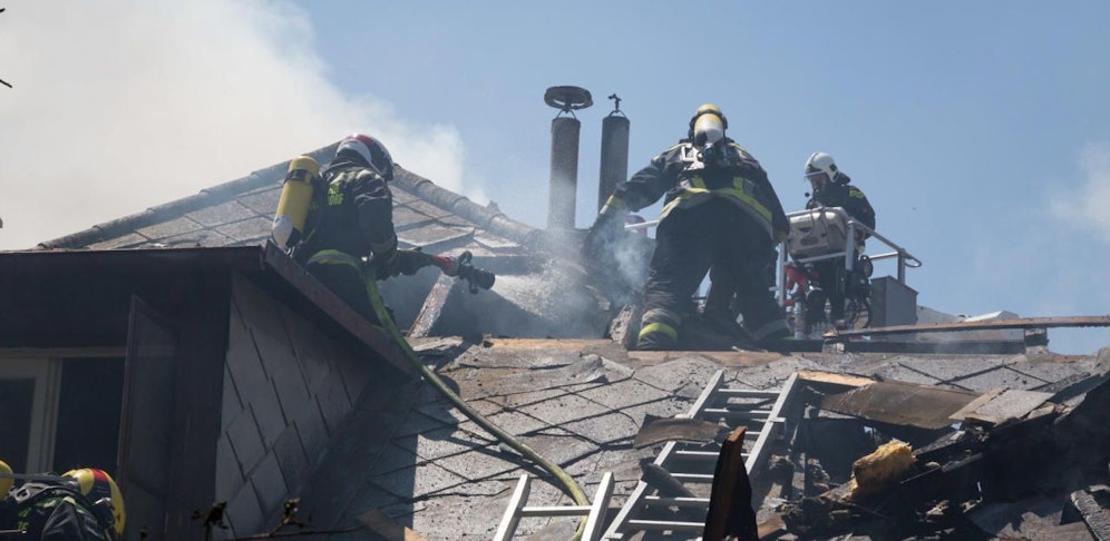 Die Flammen hatten von einer Scheune auf einen Dachstuhl übergegriffen. Die Helfer löschten den Brand und konnten ein Übergreifen der Flammen auf benachbarte Häuser zum Glück verhindern.