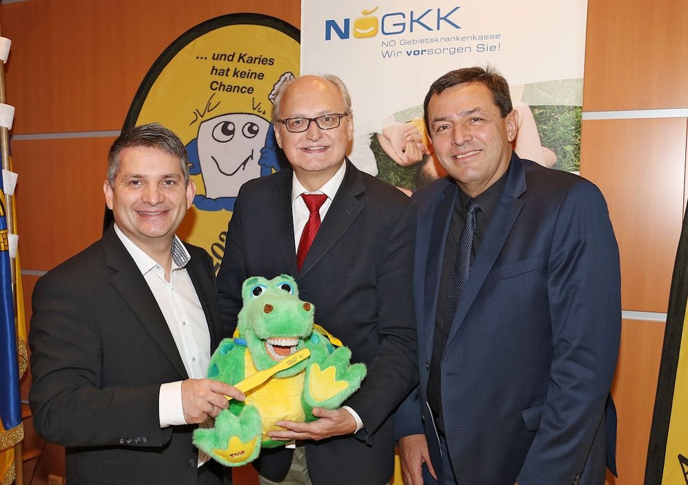 Ein Stoff-Krokodil lernt den Kindern auf spielerischem Weg die Wichtigkeit der richtigen Zahnpflege. Mit dem Modell Apollonia sollen alle Kinder gleichermaßen erreicht werden. "Im vergangenen Schuljahr wurden 121.024 Kinder in Mutter-Eltern-Beratungsstellen, Schulen und Kindergärten besucht", berichtet SP-Landesrat Maurice Androsch stolz.
