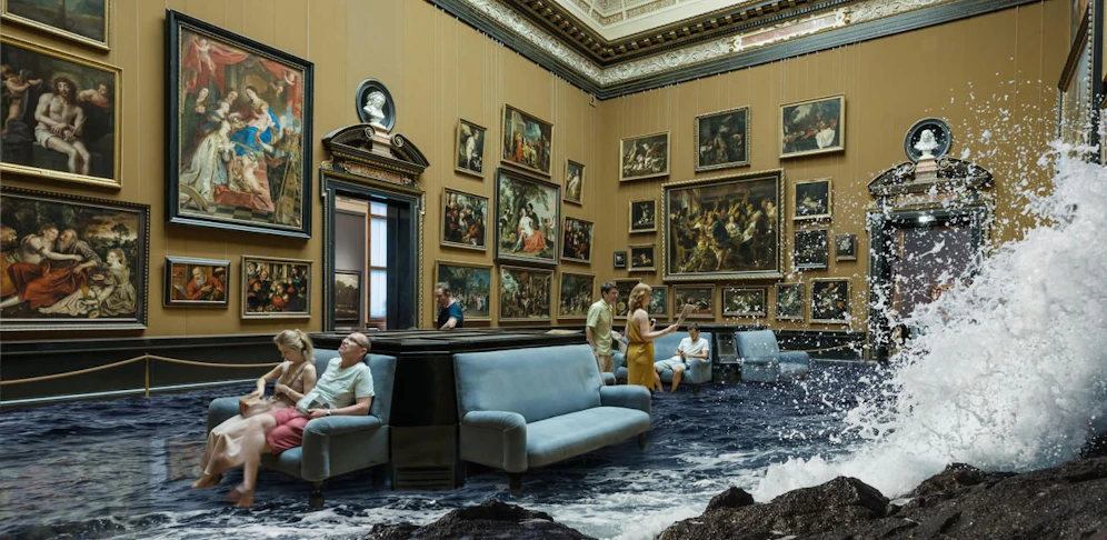 Musikalische Naturgewalten bietet u.a. die Komposition "Some Way Up", zu der sich Karlheinz Essl von der "Gewitterlandschaft" von Peter Paul Rubens inspirieren ließ. Ein besonderes Anliegen war es ihm, "die Natur nicht nur als Idylle" zu zeigen. "Es musss ins Bedrohliche umkippen", so Essl. Seine Komposition ist als Soundinstallation auch in der die Ganymed-Serie begleitenden Ausstellung "The Last Day" im Bassano Saal zu hören. Hier lässt Fotograf Helmut Wimmer die Natur mithilfe von 12 Arbeiten in die Säle eindringen, inspiriert von Naturkatastrophen und historischen Begebenheiten. Erde und Wasser bahnen sich hier unaufhaltsam ihren Weg, Felsen bemächtigen sich der Interieurs, Laub und Gehölz bedecken antike Büsten.