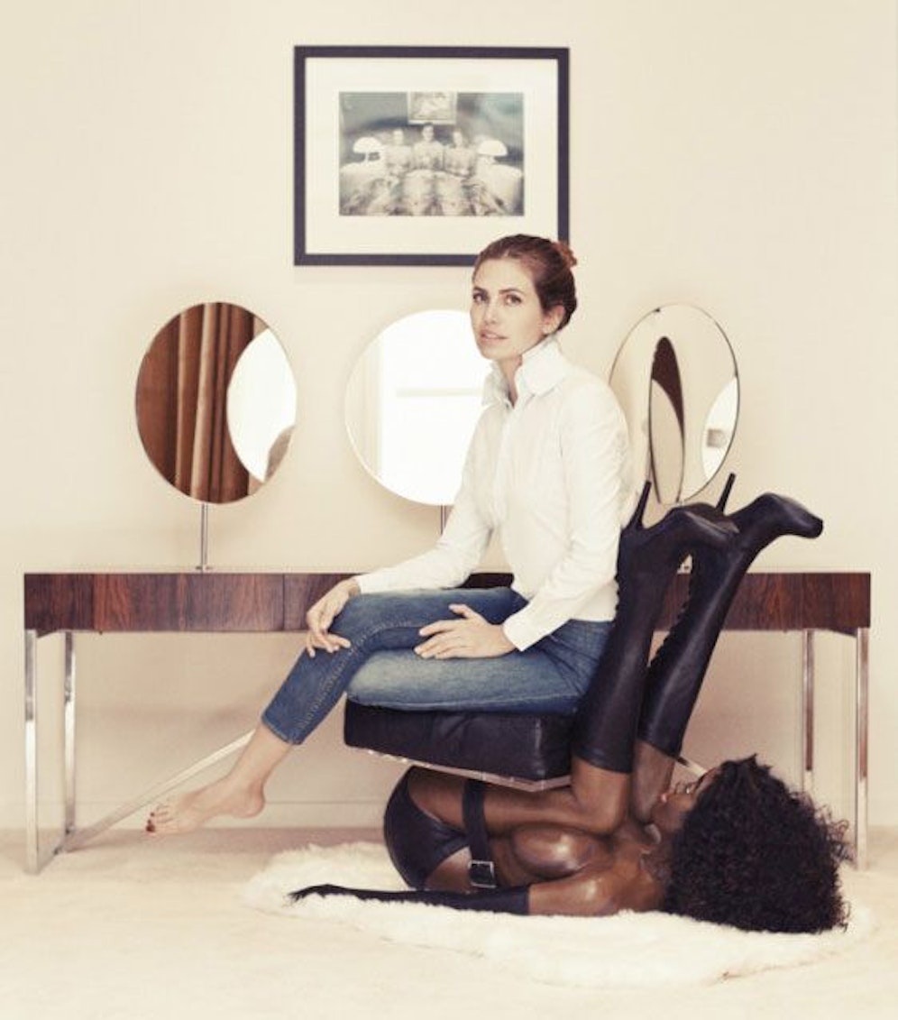 Rassistisch und geschmacklos! Die Hände der dunkelhäutigen "Dame" sind gefesselt – ihre Beine weit in die Höhe gestreckt. Das bizarre Bild mit der Sessel-"Frau" (das Sessel-Modell des Künstlers Allen Jones gibt es übrigens auch in Weiß) wurde auf dem Fashionblog Buero 24/7 veröffentlicht.