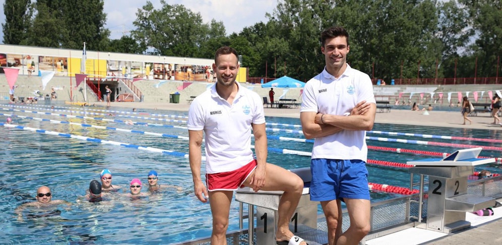 Jeden Samstag bieten die beiden Schwimmprofis und Sportwissenschaftler gratis Schnupperstunden.