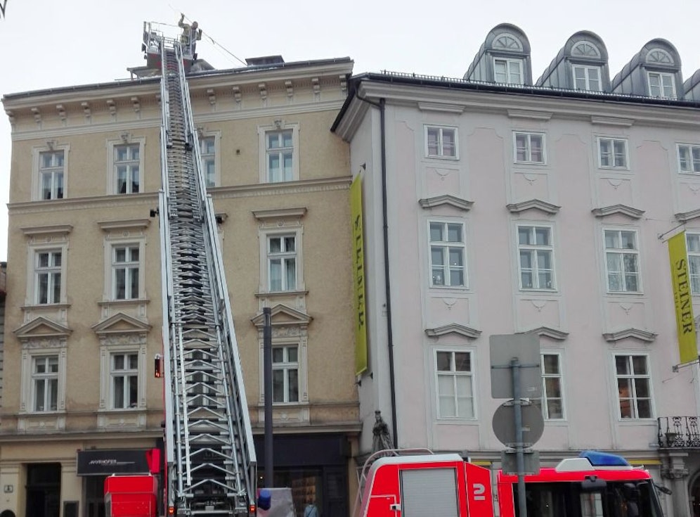 Polizeiwagen quer über der Straße, Feuerwehrmänner auf einem Dach – dieses Bild bot sich Donnerstagfrüh den Passanten bei der Promenade in Linz. Denn: Eis hatte sich gelöst, drohte herunter zu stürzen. Fast zwei Stunden lang musste die Promenade während des Einsatzes für den Verkehr gesperrt werden.