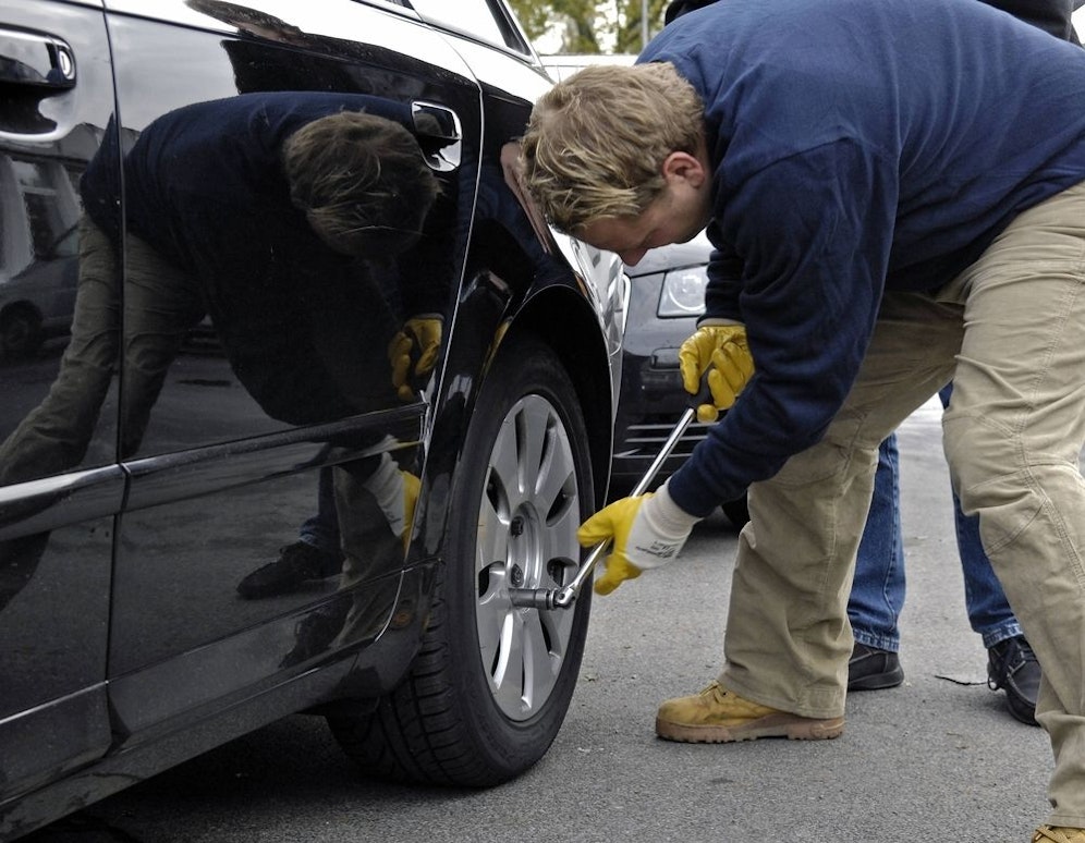 Ein Passant bot an, beim Reifenwechseln zu helfen – schnappte dann aber die Handtasche von der Rückbank und lief weg. Nach kurzer Verfolgungsjagd warf der Täter seine Beute weg, sprang zu seinem Komplizen ins Fluchtauto und brauste davon.