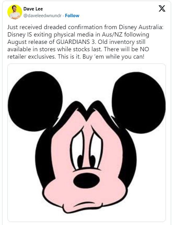Aus die Maus? Disney soll in Australien kein Interesse mehr an physischen Datenträgern für ihre Filme haben. DVD und Blu-Ray sind in Zukunft womöglich Geschichte. Dies berichten mehrere australische Newsportale, die Kontakt zu Disney Australia hatten. Die Neuigkeit wird auch vom im Land ansässigen Einzelhandel mit Unterhaltungsmedien bestätigt. Die Läden sollen in Zukunft keine DVD- und Blu-Ray-Lieferungen mehr von Disney-Filmen erhalten.