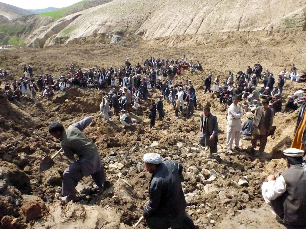 Ein ganzer Teil des Dorfes Aab Bareek im entlegenen Nordosten Afghanistans ist buchstäblich vom Erdbeben verschluckt worden. Bei einem massiven Erdrutsch in der Provinz Badachschan kamen am Freitag mindestens 300 Dorfbewohner ums Leben. Am Samstag stellten die Helfer die Suche nach Überlebenden ein. Ortsbewohner hatten zunächst von bis zu 2.500 Opfern berichtet.