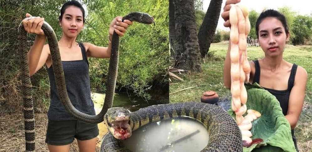 Für die Video-Plattform zerstückelte und schmauste die junge Frau nämlich nicht nur Schlangen, Eidechsen und Rochen, sondern auch eine Wildkatze und einen geschützten Reiher.