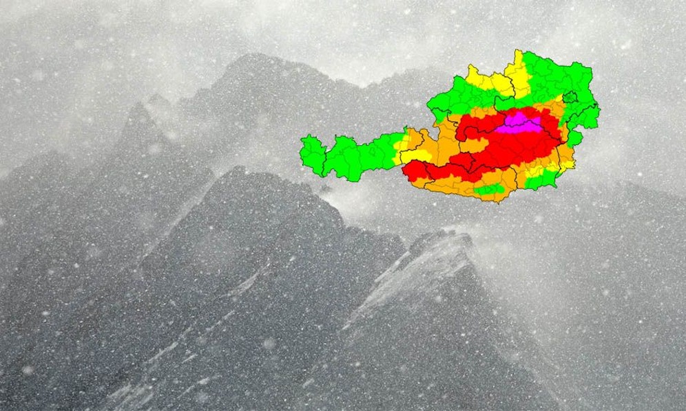 Nach dem stürmischen Dienstag lässt auch der Mittwoch in weiten Teilen Österreichs keine Atempause zu: Auf den Bergen fällt nicht nur jede Menge Schnee, sondern es weht weiterhin orkanartiger Sturm. In Niederösterreich, Oberösterreich und der Steiermark sowie Teilen Salzburgs, Kärntens und Tirol gelten Wetterwarnungen der Stufen ROT und VIOLETT.