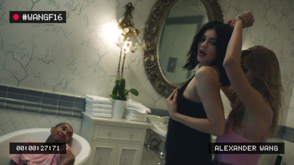 Geht es hier um Mode? Egal. Man ist sowieso mit dem "Starschauen" beschäftigt. Denn was Alexander Wang hier vor der Kameralinse herumhüpfen lässt, ist beachtlich.