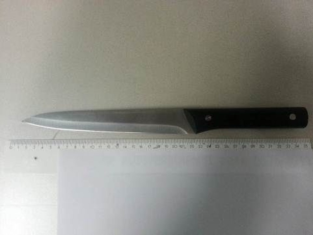 Dort hantierte er weiter mit einem riesen Messer - 33 cm lang und mit einer 21 cm-Klinge - und wollte nicht aufgeben.