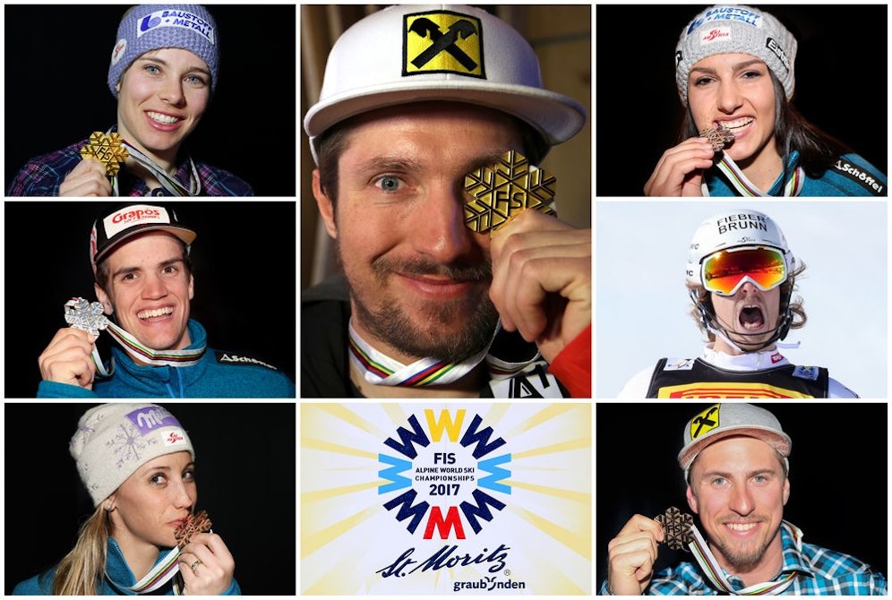 Kurios! 14 Jahre liegen zwischen den beiden alpinen Ski-Weltmeisterschaften in St. Moritz. Doch das Ergebnis bleibt gleich. Denn genauso wie 2003 holten die rot-weiß-roten Ski-Asse auch 2017 drei Goldmedaillen, vier Mal Silber und zwei zwei Mal Bronze.